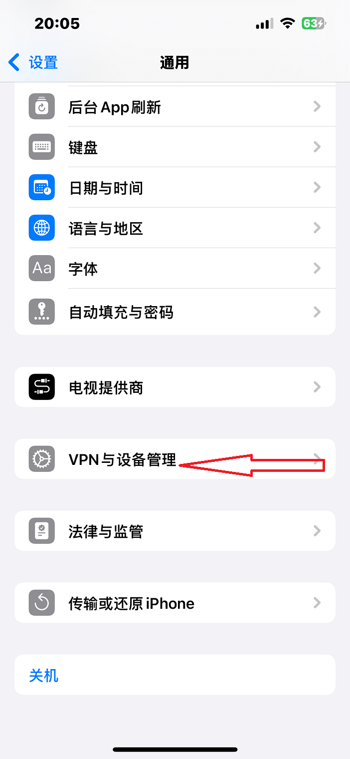 打开手机设置找到通用滑倒地下找到箭头所指地方,