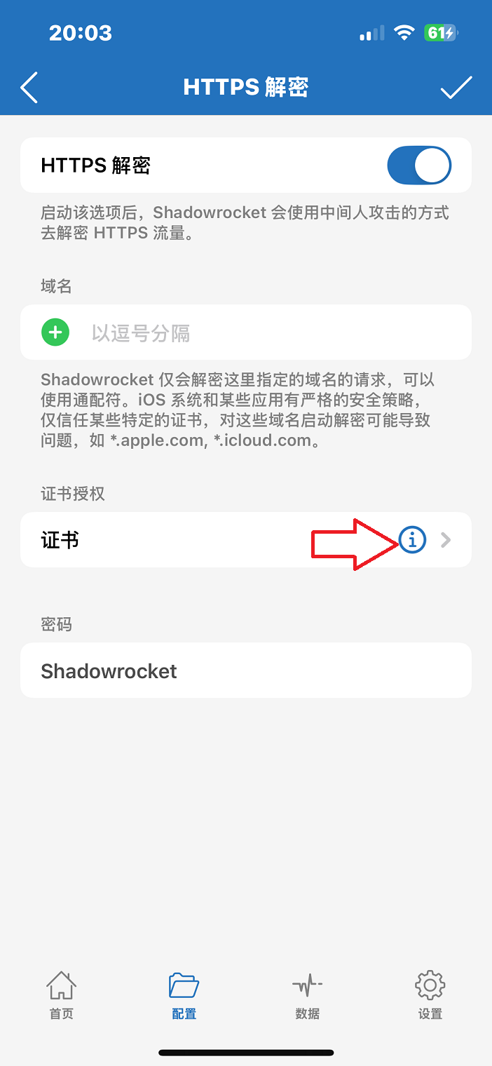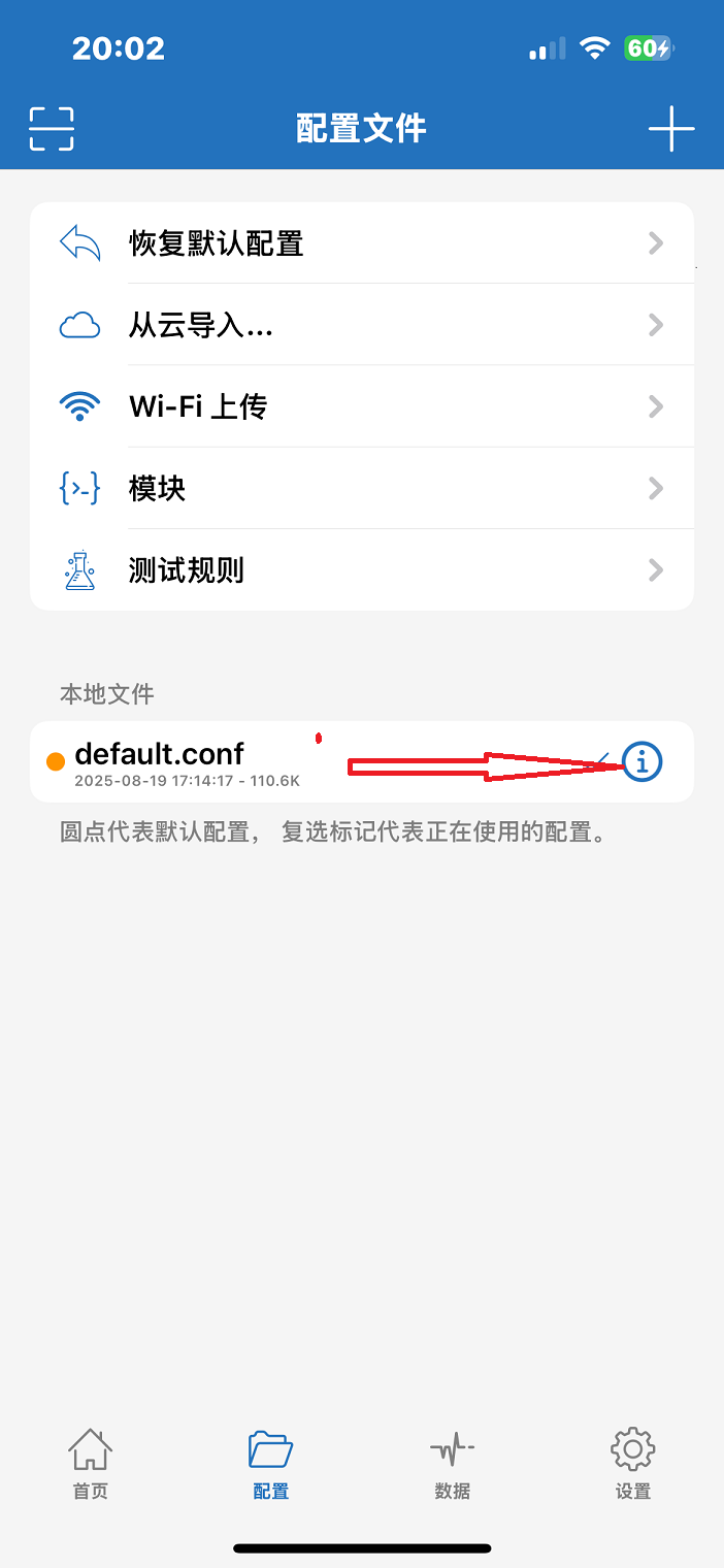 打开小火煎找到下方配置,然后点击图中的所指感叹号,